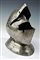 Elmo chiuso composito, datazione: 1600 circa provenienza: Europa, Coppo più antico lavorato in un unico pezzo con la cresta bassa e lavorata a fingere il tortiglione, pennacchiera di restauro. Visiera con spacchi oculari rettangolari, ventaglia con fori d'areazione disposti a rosetta, barbozza con bordi dell'apertura facciale lavorati ad intaccature e bottone a scatto per il fissaggio della ventaglia. Tre lame di guardacollo e gronda, le prime forate, alcune di restauro. Restauri vari. altezza 32 cm.
