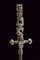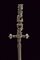 Stiletto, datazione: XVIII Secolo provenienza: Italia, Lama dritta di sezione quadra con lati scanalati, base a capitello e a motivi floreali; fornimento in acciaio con finissimi intagli, raffigurante figure stilizzate e con un volto munito di un elmo al pomo. lunghezza 25 cm.