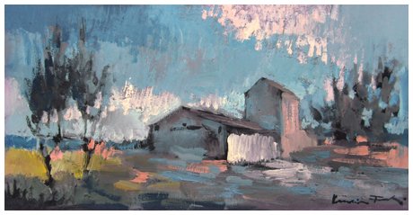 VOLTOLINO FONTANI Livorno 1920 – Livorno 1976 Paesaggio livornese Olio su tavola 20 x 40. Firma in b. a d., titolo sul verso.