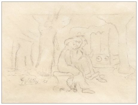 GIUSEPPE VIVIANI Agnano Pisano 1898 – Pisa 1965 Senza titolo 1951 Grafite su carta 23 x 28. Firma e data in b. a s.; sul verso altro disegno con timbro studio dell’artista “Tarde sed tuto” e firma Elda Viviani in b. a d. Autentica Silvio Guarasci / Saletta Viviani, Pisa su foto in esecuzione.