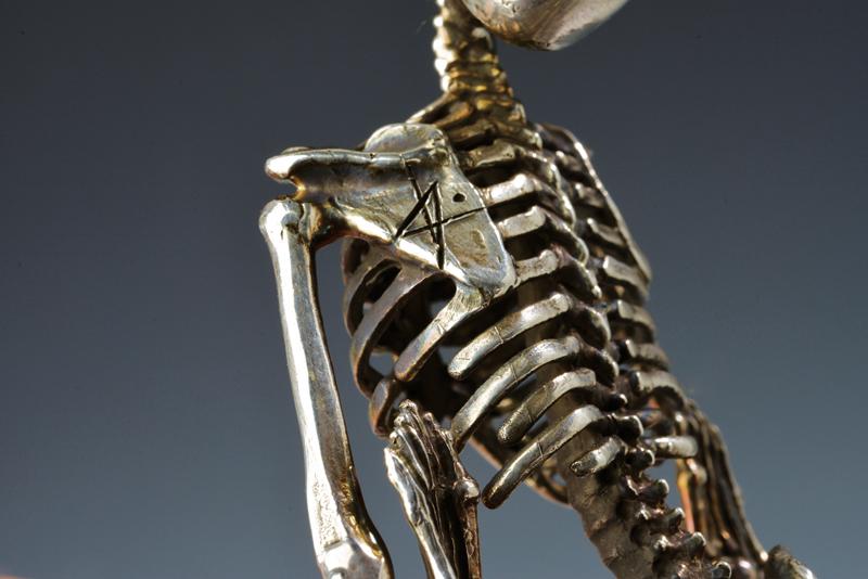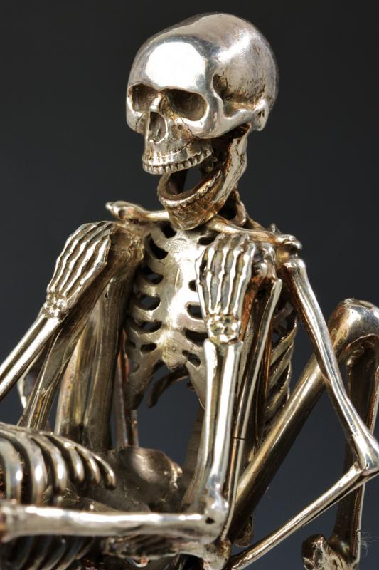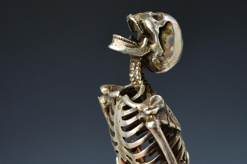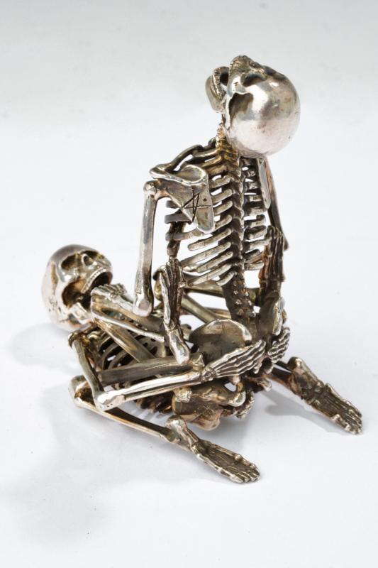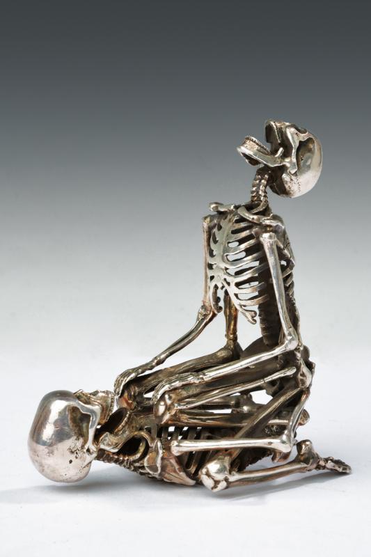 Scultura in argento, datazione: XIX Secolo provenienza: Europa, Interessante scultura erotica sul tema 'Memento Mori', finemente realizzata a tuttotondo, in argento. Una delle due figure reca un firma stilizzata. altezza 9 cm.