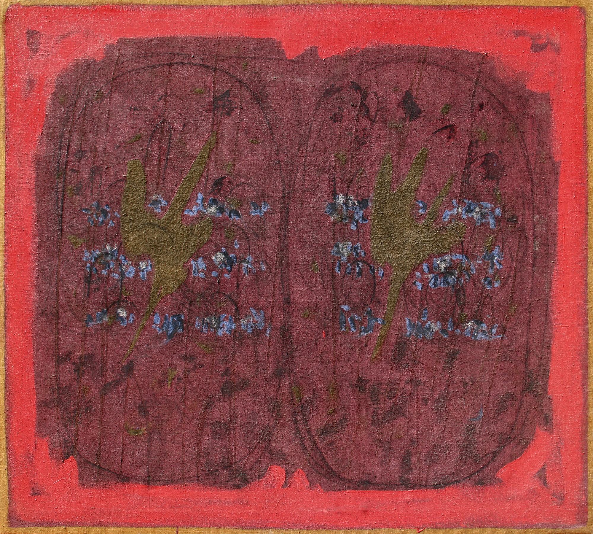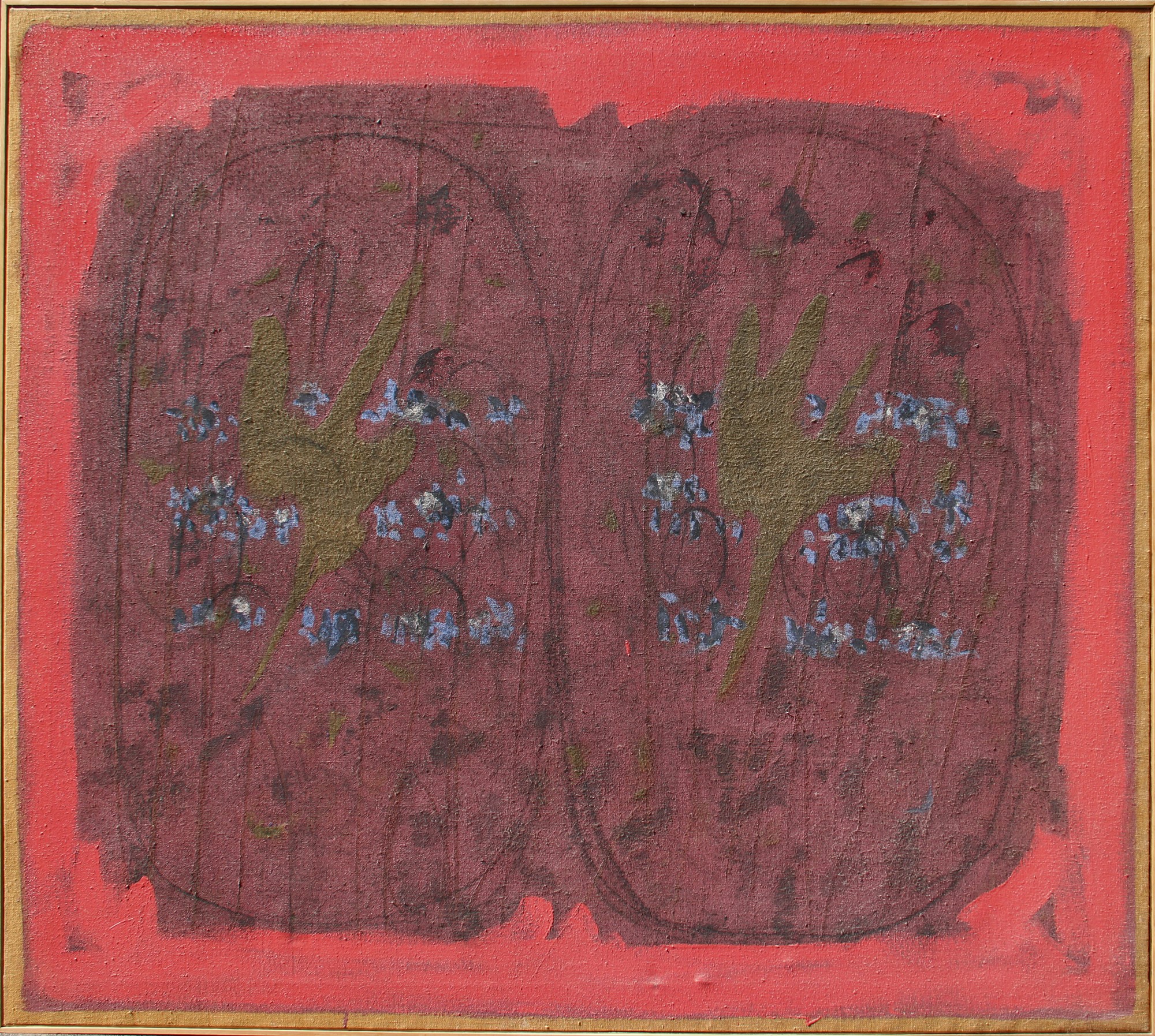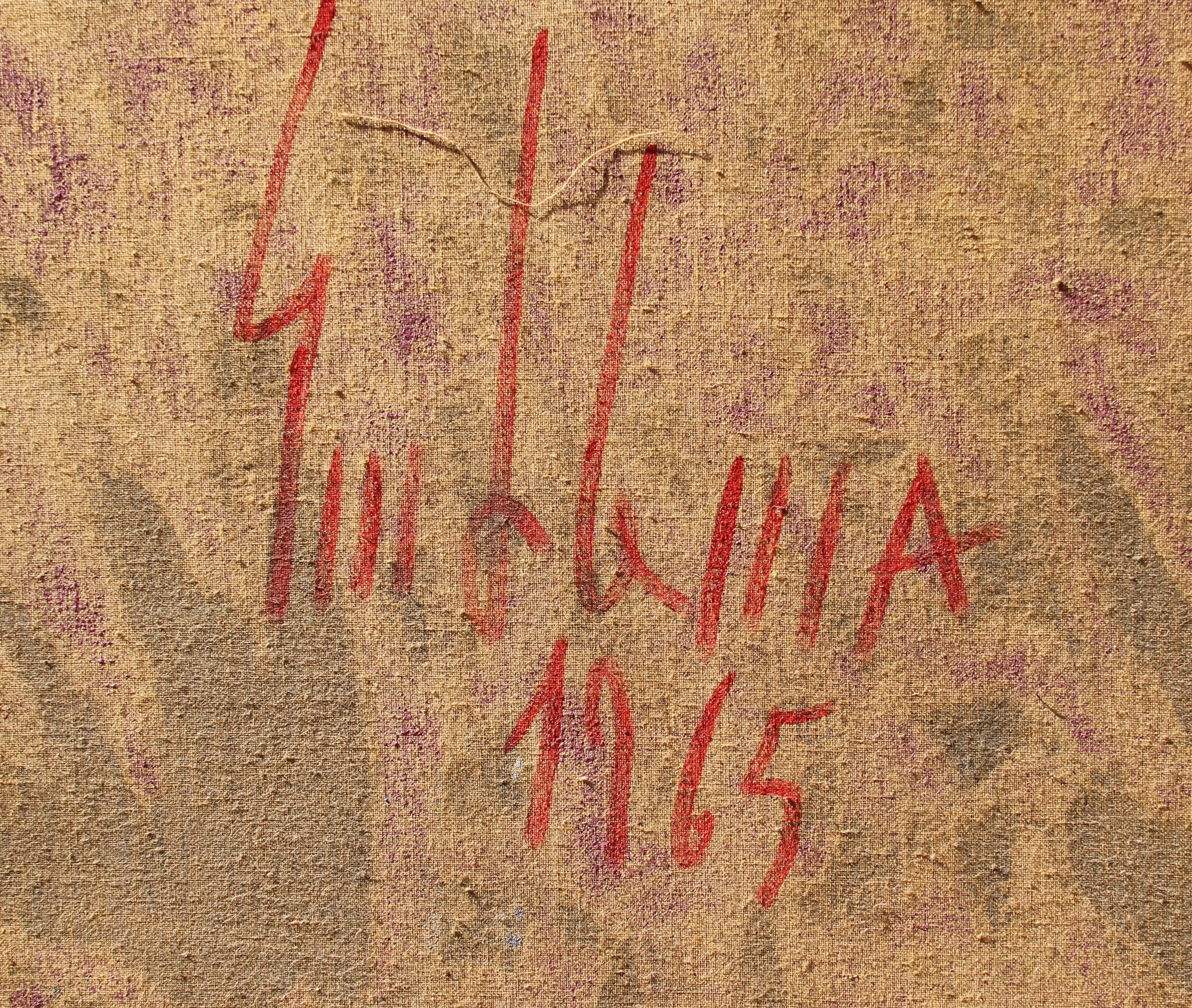 Salvatore EMBLEMA, La vie en rose, 1965, terre colorate su tela di juta, cm. 180x200