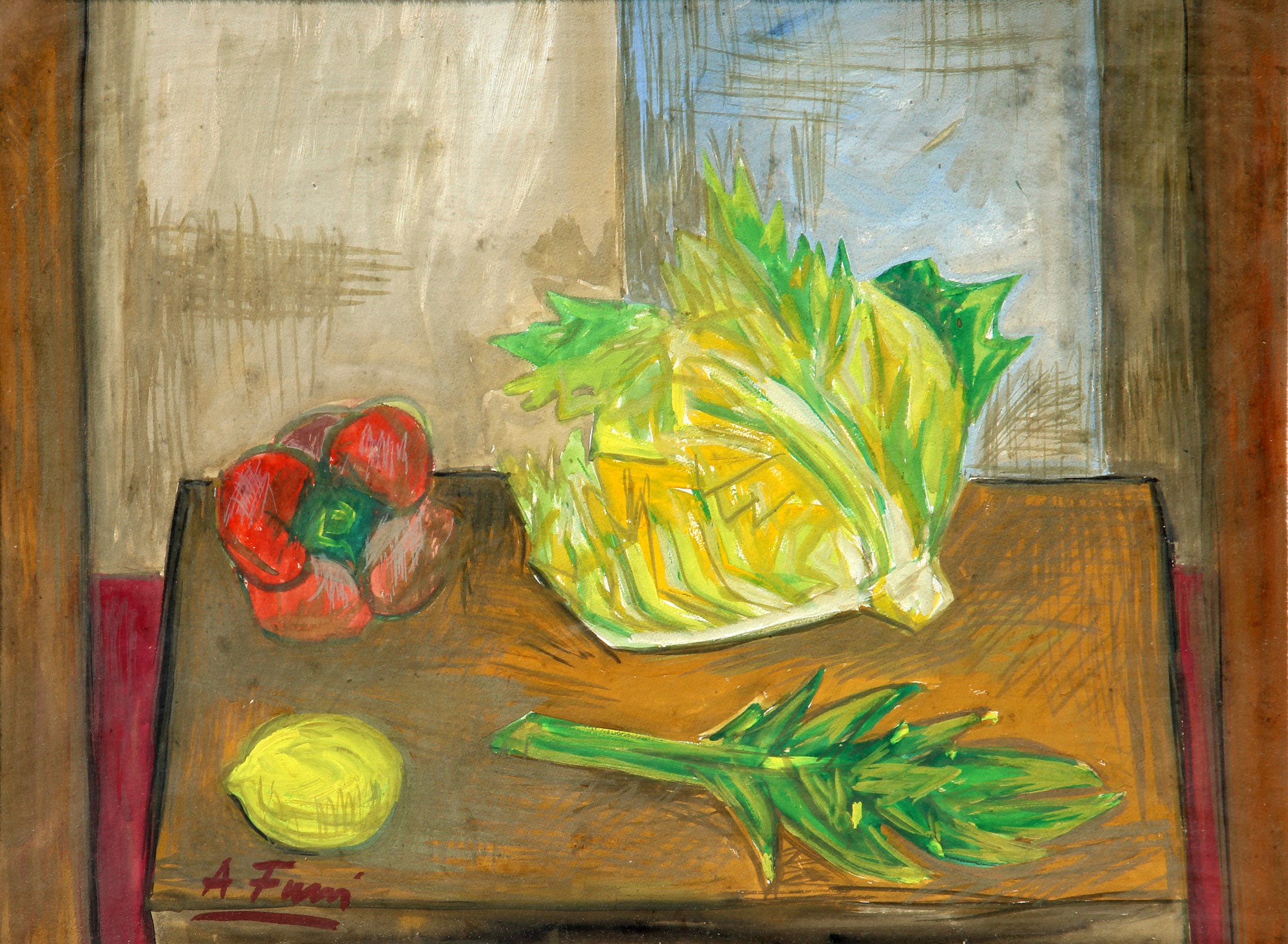 Achille FUNI, Natura morta, , tecnica mista su faesite , cm. 42x57