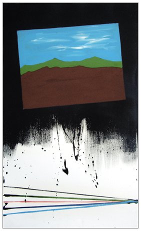FRANCO ANGELI Roma 1935 – Roma 1988 Paesaggio click 1973 Olio su tela 100 x 60. Firma + etichetta sul verso. Prov.: Studio dell'artista – galleria Miralli, Viterbo. Autentica e arch. Angiolino Calestani, Milano su foto.