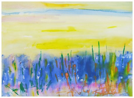 ANTONIO CORPORA Tunisi 1909 – Roma 2004 Antico tramonto Acquerelli su cartoncino Arches 57 x 76. Firma e titolo in b. a d. Pubbl.: Mensile Arte Mondadori n.195, aprile 1989. Autentica dell'autore + etichetta galleria Di Summa, Roma, su foto.