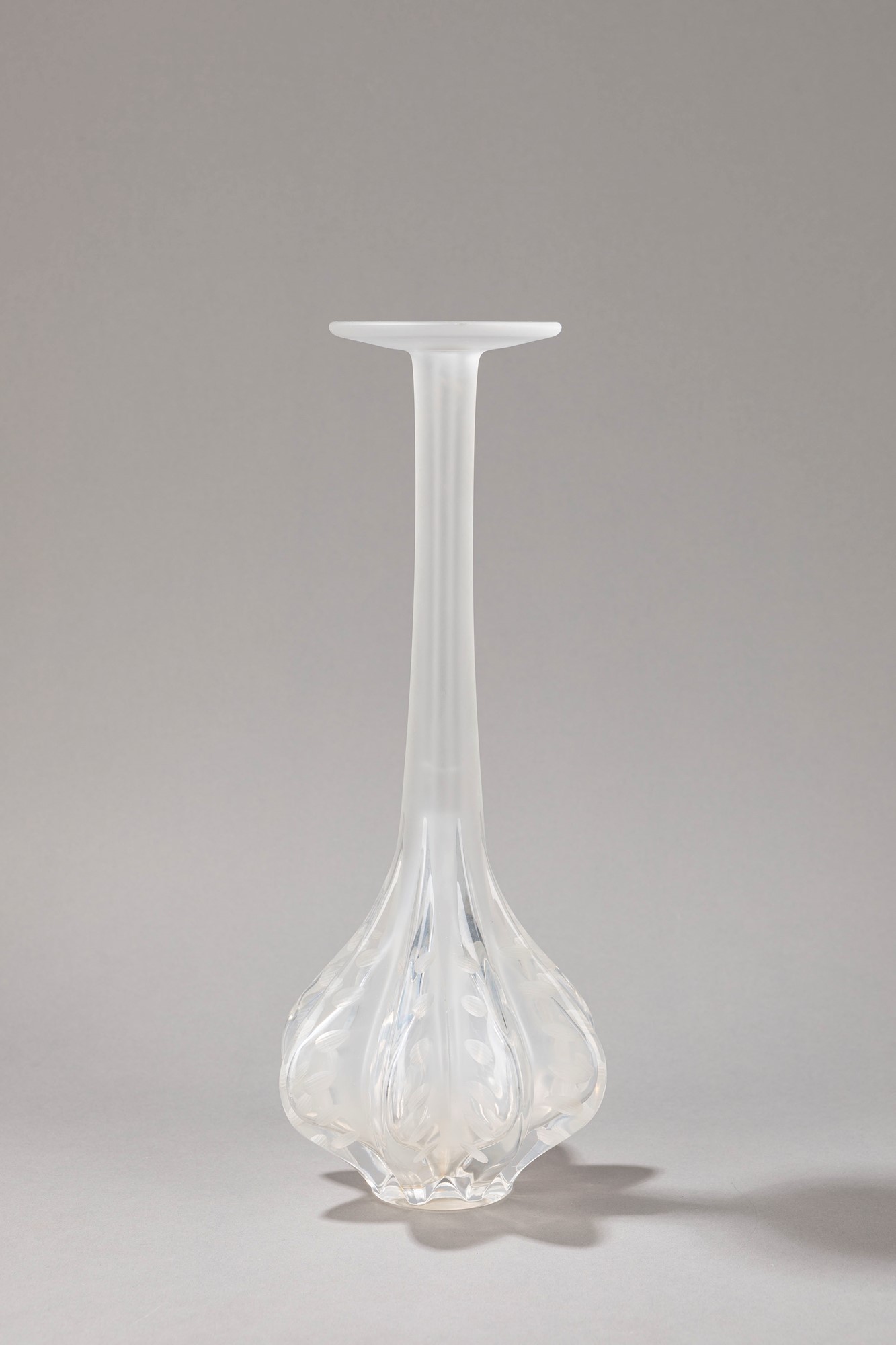 Lalique - Vaso Marie-Claudeh 34,3 x 13 cm a bulbo costolato con alto collo in cristallo soffiato a stampo con decoro floreale stilizzato.