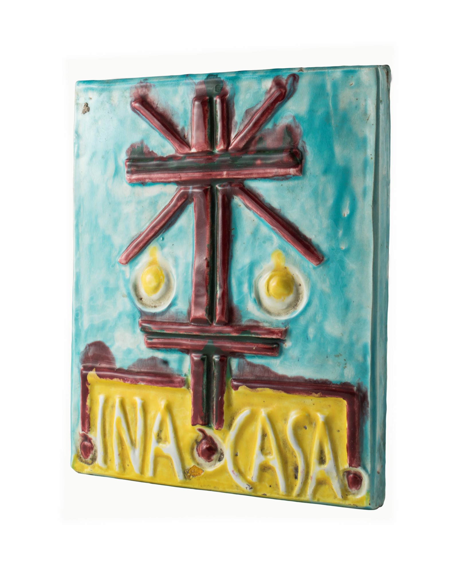 INA Casa - Due mattonelle decorativecm h 36x30x3/h 27x21x3 in ceramica lavorata.