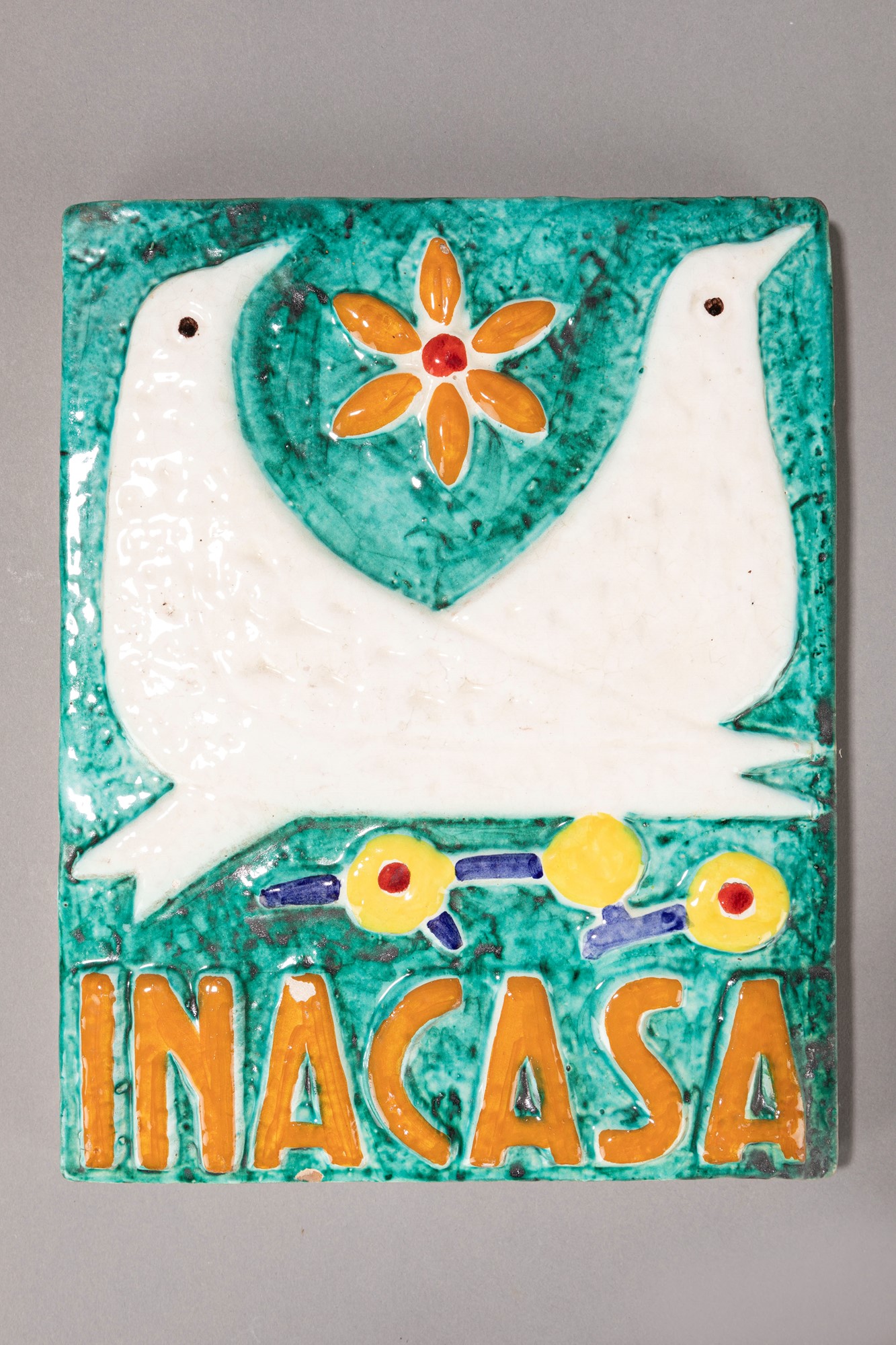 INA Casa - Mattonella decorativaH 27 x 21 x 3 cm in ceramica lavorata con disegno di colombe.