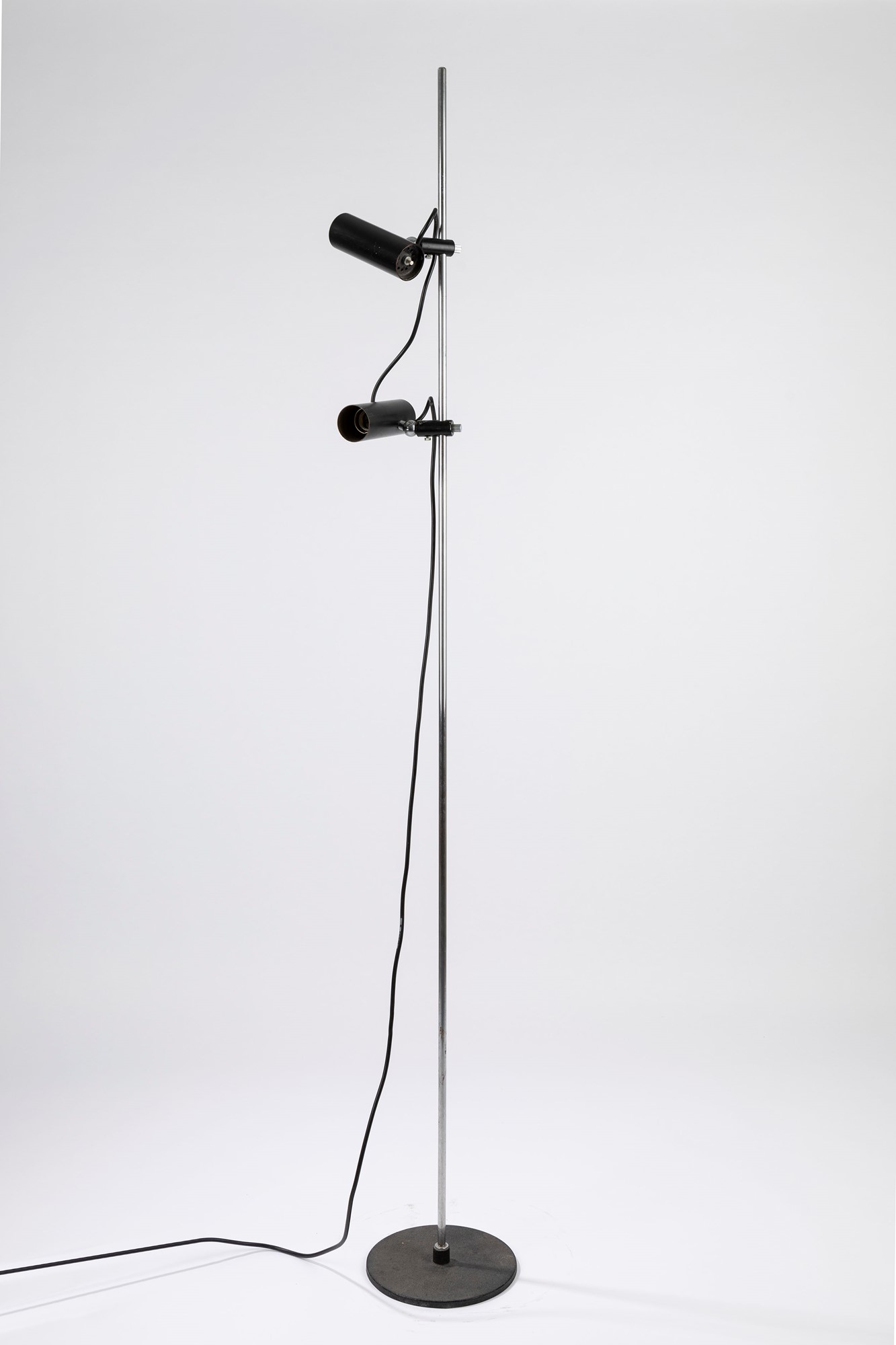 Gino Sarfatti - Lampada da terra mod.1055/SPh cm 188 Stelo in acciaio cromato, diffusore orientabile, base in ghisa laccata.