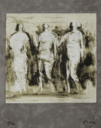 Henry Moore (Castleford, 1898 - Munch Hadham, 1986) Three Graces Litografia a colori, mm. 242x200; es. 31/90 Firma in basso a destra, numerata in basso a sinistra Edizione F.lli Pozzo Torino. Bibliografia: G. Cramer, Henry Moore The Graphic Work1973-1975, Edizioni Cramer Ginevra 1976 , Cat. n° 368