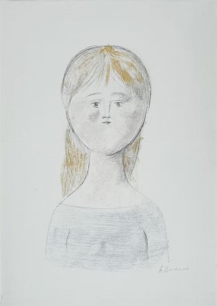 Antonio Bueno (Berlino, 1918 - Firenze, 1984) Bambina Carbonicino e pastelli su carta, cm. 50x35 Firma in basso a destra. Sul verso: etichetta Galleria d'Italia Calenzano