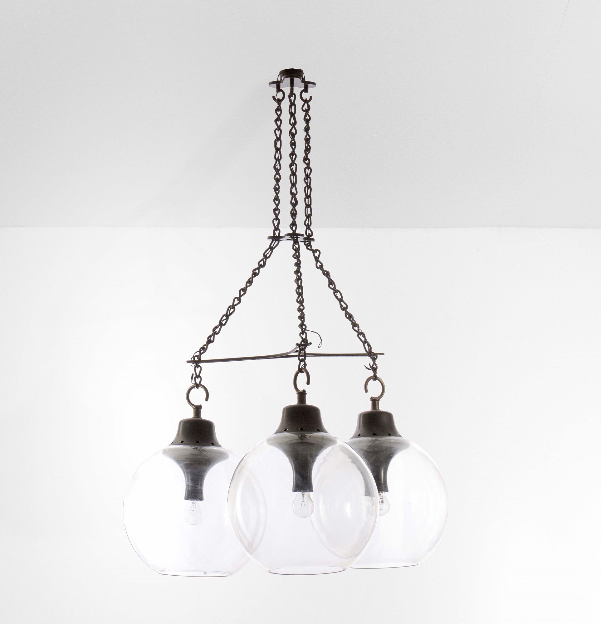 Luigi Caccia Dominioni, Lampada a sospensione mod. LS10 Grappolo, struttura in alluminio laccato e diffusore in vetro soffiato., Disegno originale per il Club House del Golf di Monticello., Prod. Azucena, Italia, 1967, W. 90 - D. 90 - H. 150 Cm, Bibliografia, G. Gramigna, Repertorio del design italiano 1950-2000, p. 141, Allemandi, 2003., G. Gramigna, Repertorio del design italiano 1950-1980, p. 260 , Mondadori, 1985.