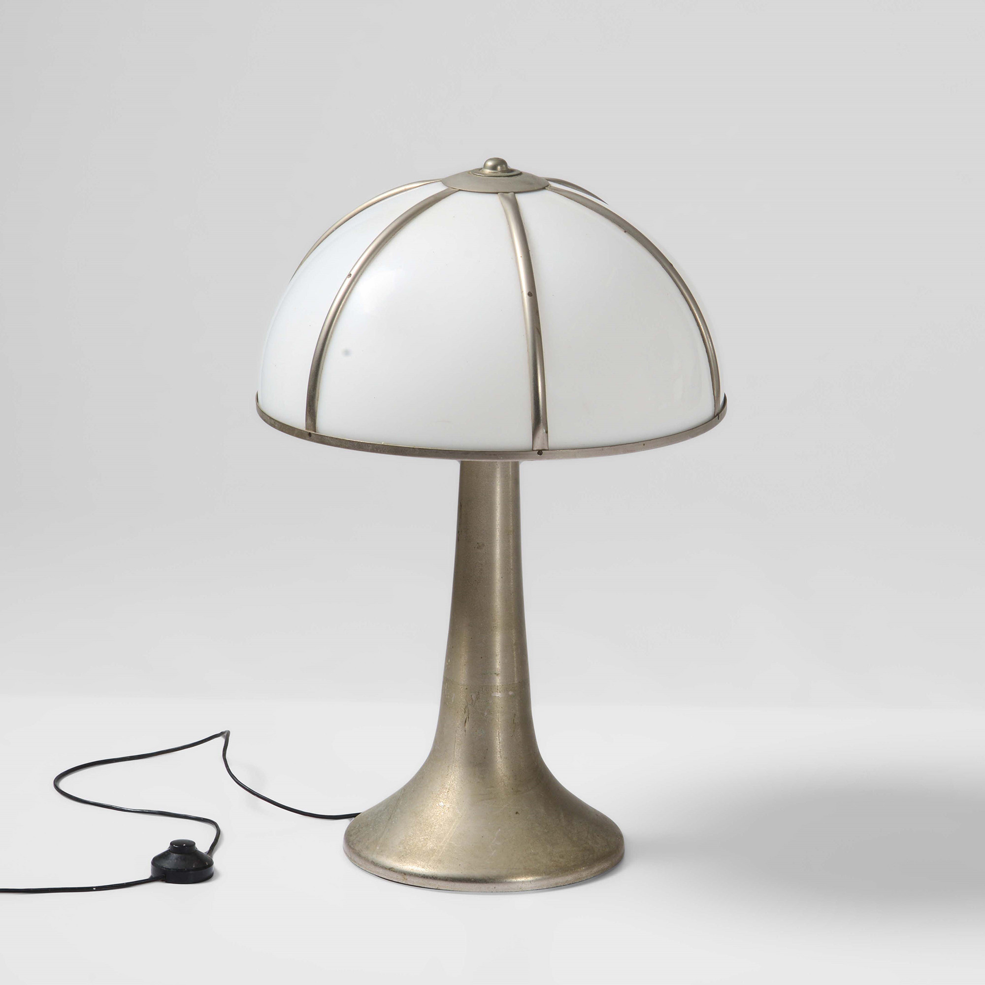 Gabriella Crespi, Lampada da tavolo mod. Fungo con struttura in ottone nichelato e diffusore in ottone nichelato e perspex., Firma Incussa sul paralume., Prod. Italia, 1970 ca., W. 50 - D. 50 - H. 70 cm, Bibliografia, (a cura di) C. Cunacchia, Gabriella Crespi, Il segno e lo spirito, Mondadori Electa, 2011.