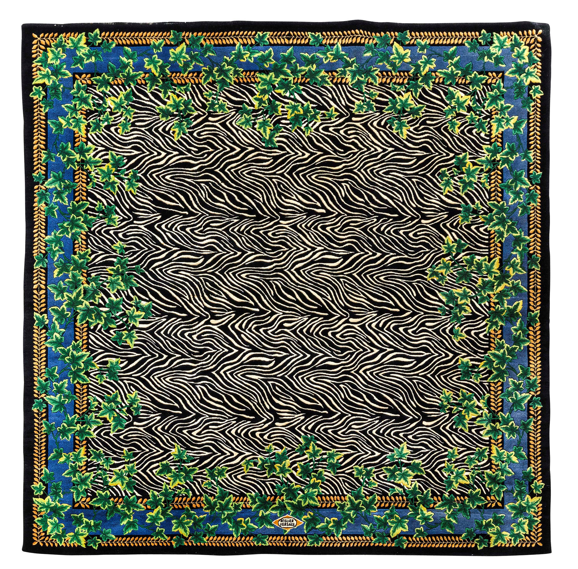 Gianni Versace, Un tappeto in lana intrecciata., Etichetta della produzione., Prod. Atelier Versace, Italia, 1990 ca., W. 239 - D. 239 - H. 2 Cm