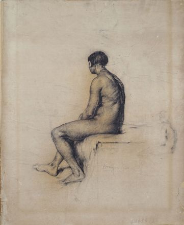 Lotto 61 | Pietro Annigoni (Milano, 1910 - Firenze, 1988) Nudo di spalle Carboncino su...