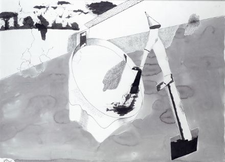 Renato Ranaldi (Firenze, 1941) Intruso, 1991 China su carta, cm.55x75 Firma e data in basso a sinistra. Autentica dell'autore su foto.