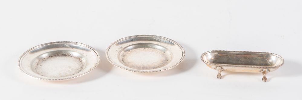 Lotto composto da due piattini e salsiera in argento 800.