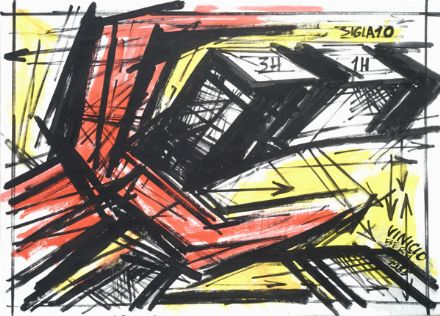 Vinicio Berti (Firenze, 1921 - 1991) Sigla 10, 1985 Acrilico su cartone, cm. 50x69,5 Firma e data in basso a destra.
