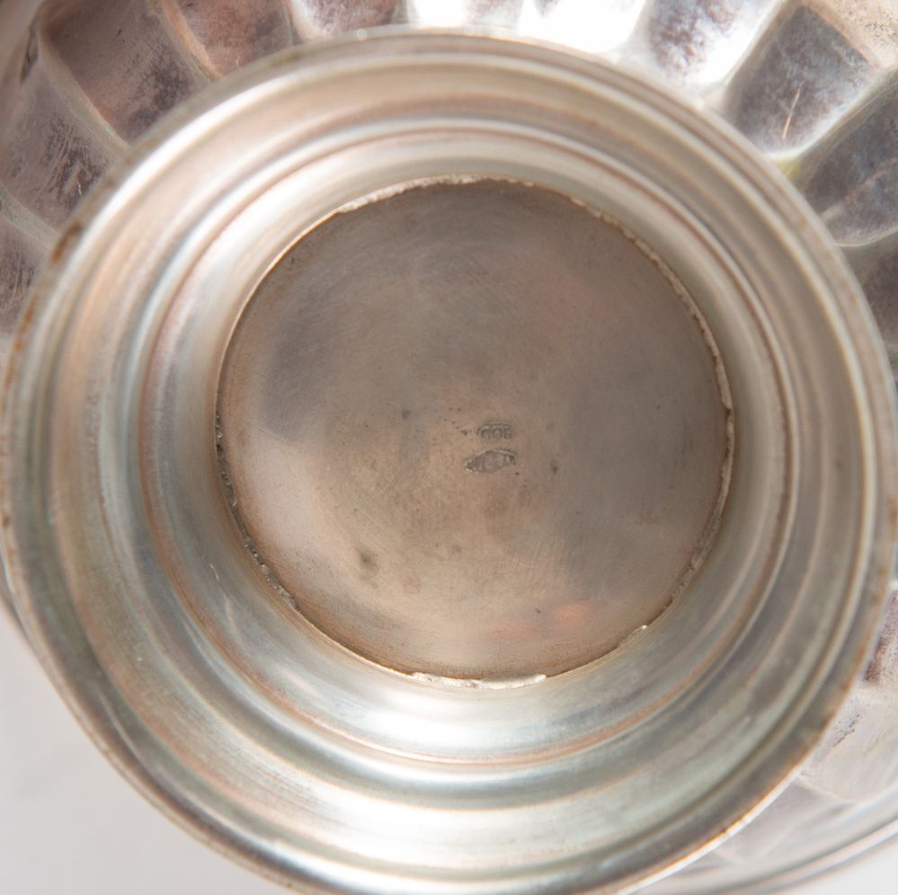 interna in vetro. Sotto la base reca punzoni: 800 e losanga locativa 176FI. Cm 7 x Ø 10,8. Peso: 146 gr.