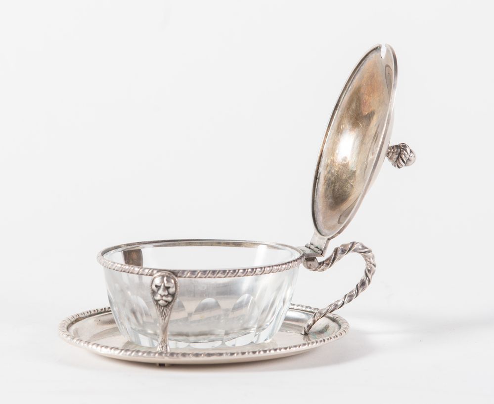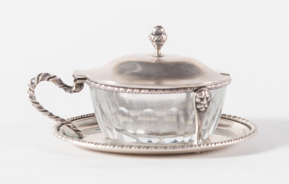Zuccheriera in argento 800 con ciotola in cristallo. Reca