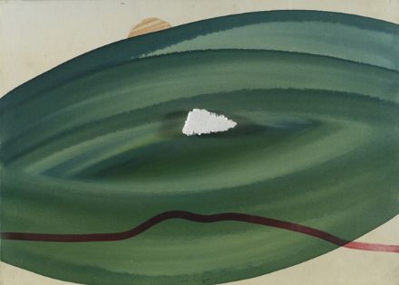 Sergio Dangelo (Milano, 1932) Mistero fragile Tecnica mista su tela, cm. 50x70 Firma in basso al centro. Sul verso: firma e titolo. Autentica dell'autore su foto.