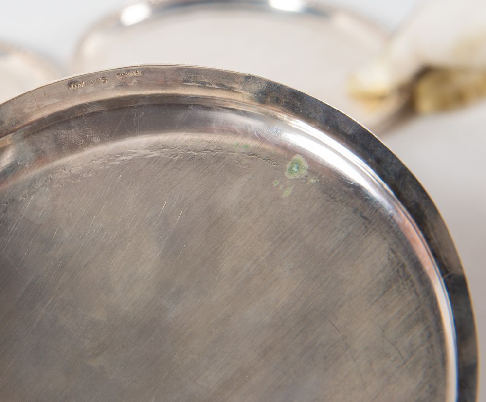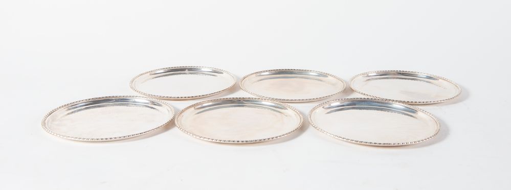 ITALIA, XX secolo. Lotto composto da sei piattini in argento 800. Sotto la...