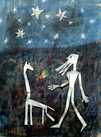Enrico Benaglia (Roma, 1938) Senza titolo, 1988 Tecnica mista e collage su tavola, cm. 46,5x33,5 Firma in basso a sinistra. Sul verso: firma, data e dichiarazione di autenticità dell'autore; timbro Galleria La Vetrata, Roma.