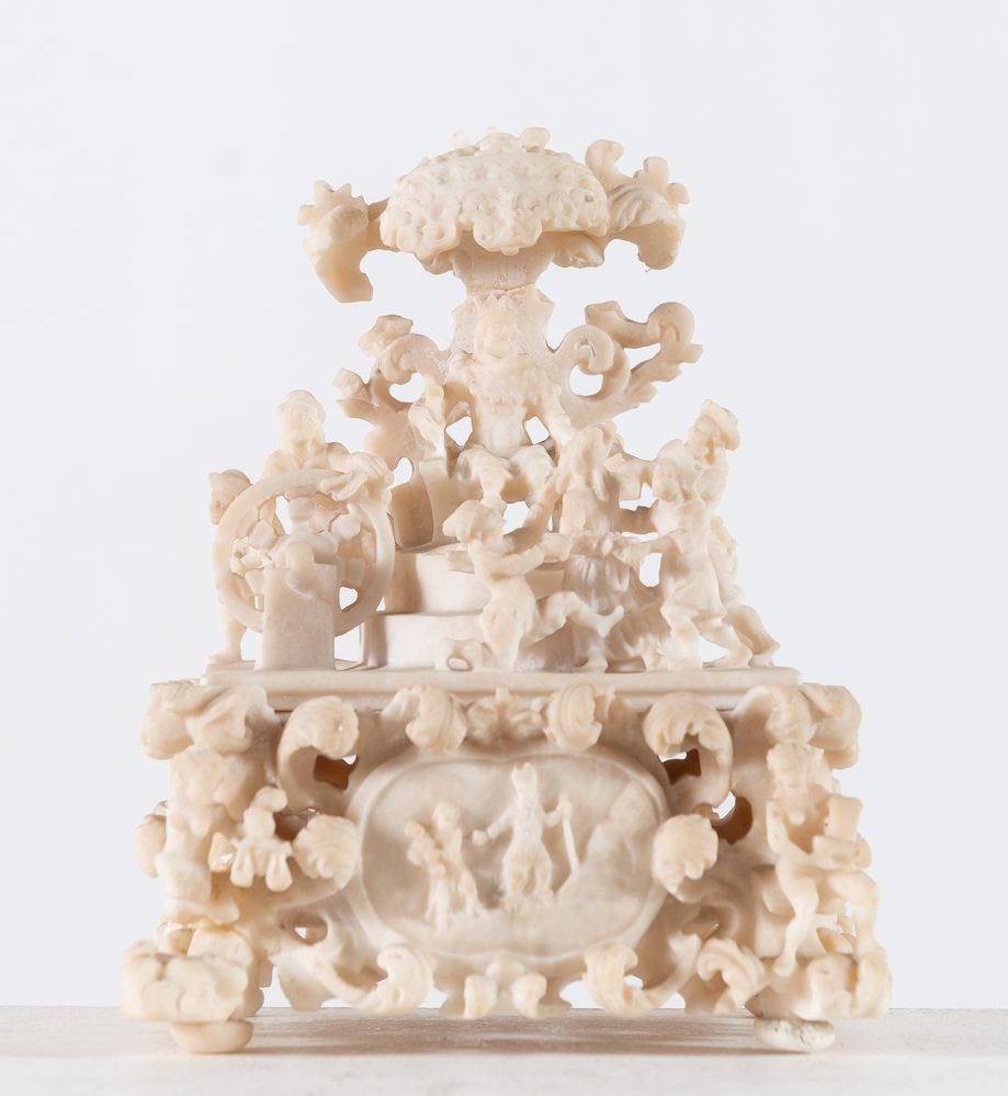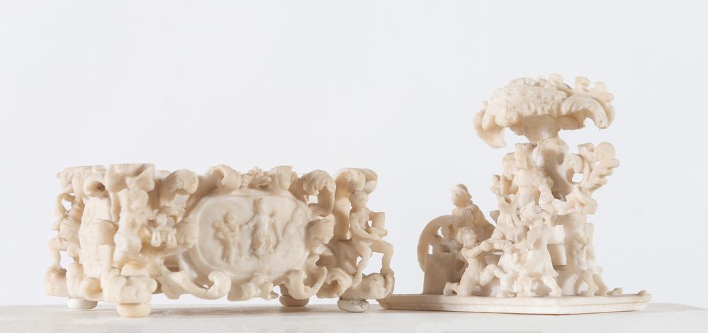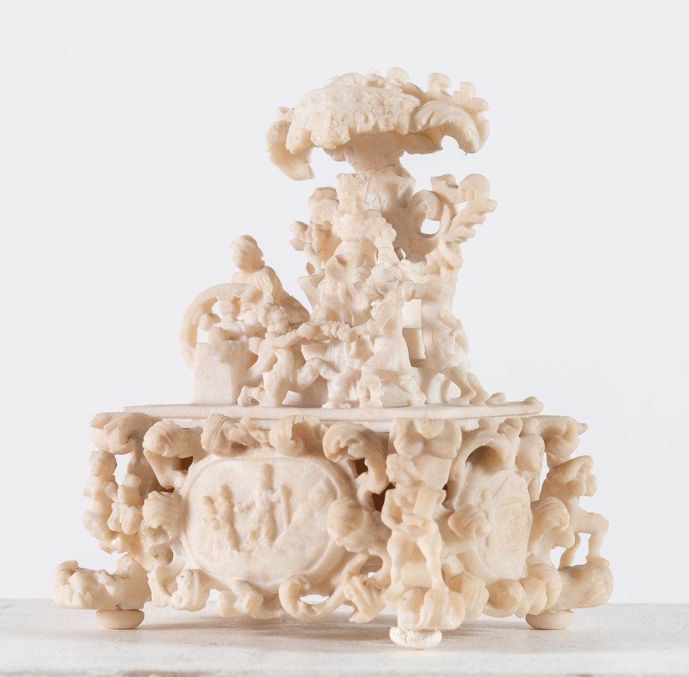 GRUPPO SCULTOREO in alabastro raffigurante scena di genere. Francia, XIX...