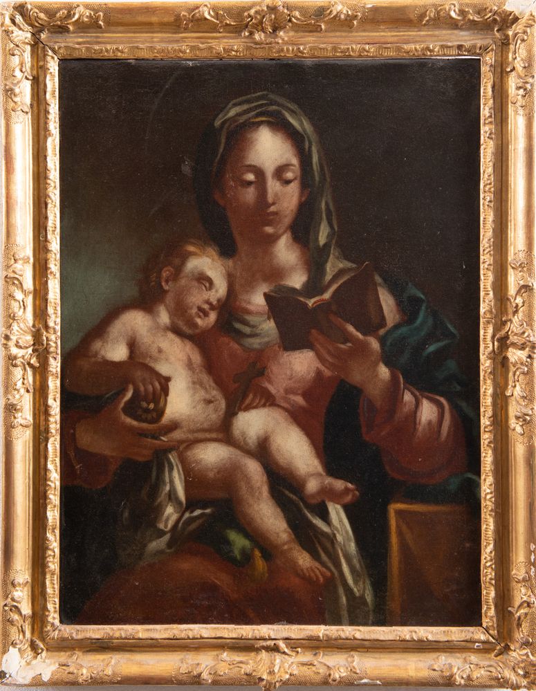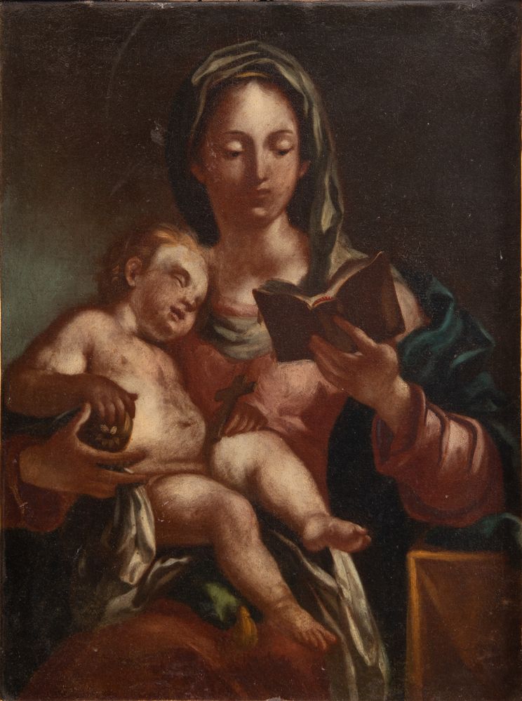 Maestro del XVIII secolo "Madonna con bambino". Olio su tela. Cm 49x37.