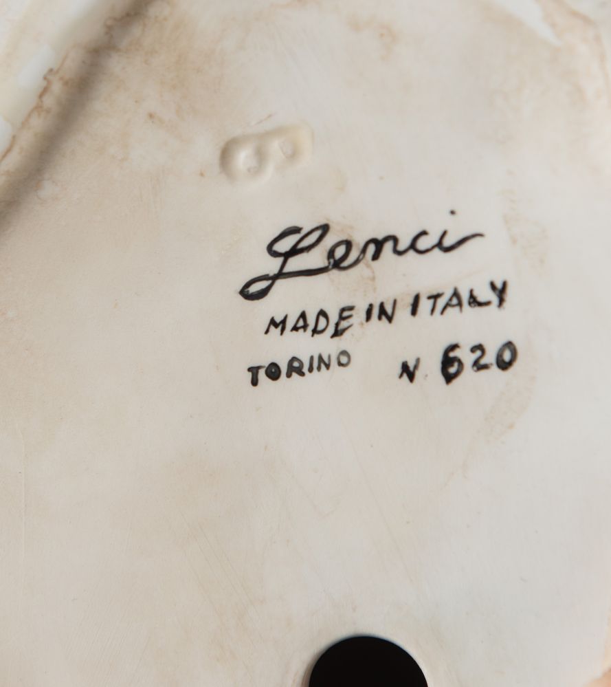 MASSIMO QUAGLINO, MANIFATTURA LENCI "Coppia di innamorati". Torino, anni 30. Terracotta maiolicata realizzata a colaggio e decorata in policromia sui toni del verde e viola pastello. Sotto la base reca iscrizione Lenci – Made in Italy – Torino – n.620. Cm 30x26x25. Pubblicata in A.Panzetta, Le ceramiche Lenci. Catalogo dell'archivio storico 1928-1964, Torino 1992, p. 228, n. 759 (cat. 620)