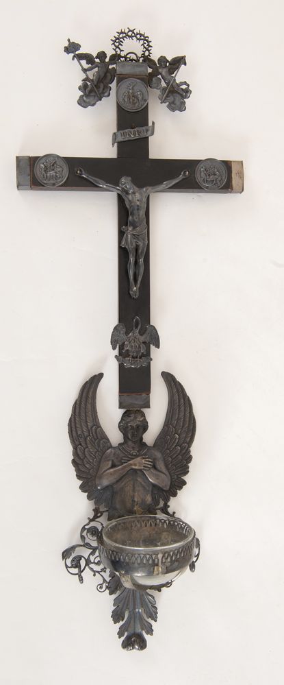 Lotto 393 | CRISTO CON ACQUASANTIERA in argento sbalzato. Stato pontificio, prima metà...