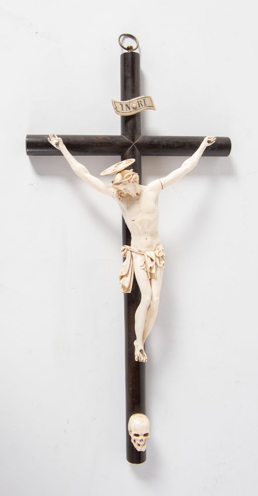 CROCIFISSO in materiale prezioso con croce in ebano. Germania/Francia, fine del XVIII secolo, inizio del XIX secolo. Cm 39,5x20.