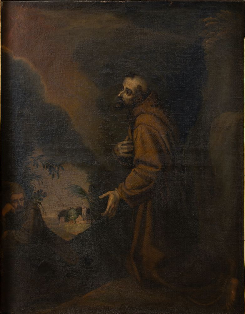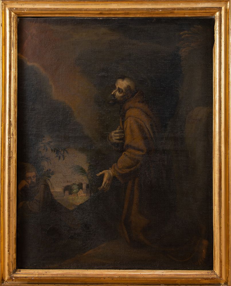 Maestro del XVII secolo. "Santo in preghiera". Olio su tela. Cm 96x75,5. Provenienza: Città del Vaticano.