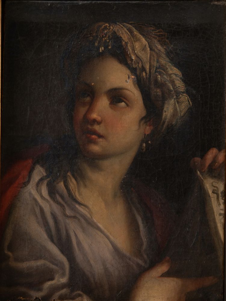 Maestro emiliano del XVIII secolo “Sibilla”. Olio su tela. Cm 46,5x35. Cornice antica.