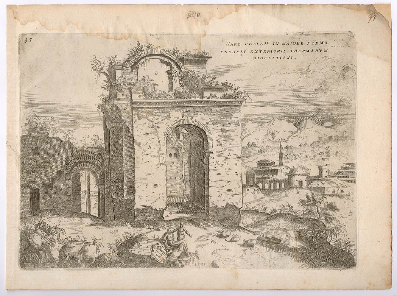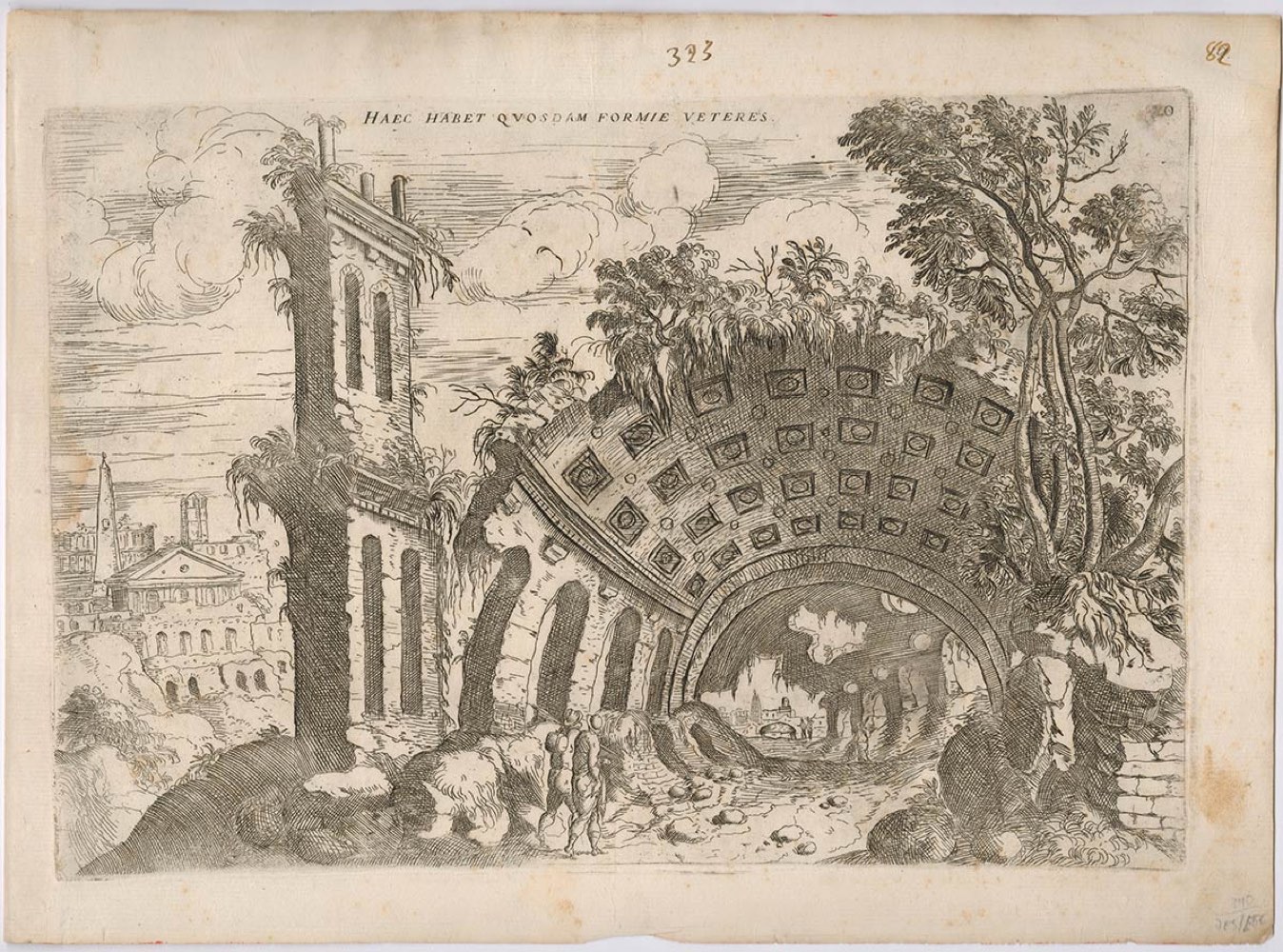 tratte da 'Praecipua aliquot Romanae Antiquitatis Ruinarum Monimenta'. Stato II su III, dopo la cancellazione e cambiamento dei titoli e la aggiunta dei numeri nell'angolo superiore a sinistra.