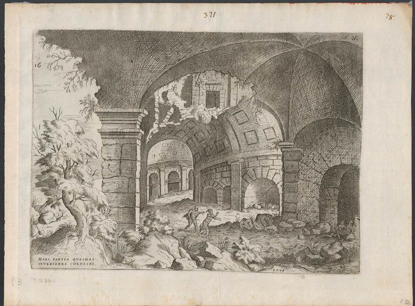 Giovanni Battista Pittoni (c.1520-c.1583) da Hieronymus Cock (1517-1570): HAEC CELLAM IN MAIORE FORMA EXEDRAE EXTERIORIS THERMARUM DIOCLITIANI'; 'HAEC PARTES QUASDAS INTERIORES COLOSSEI' E 'HAEC HABET QUOSDAM FORMIE VETERES'