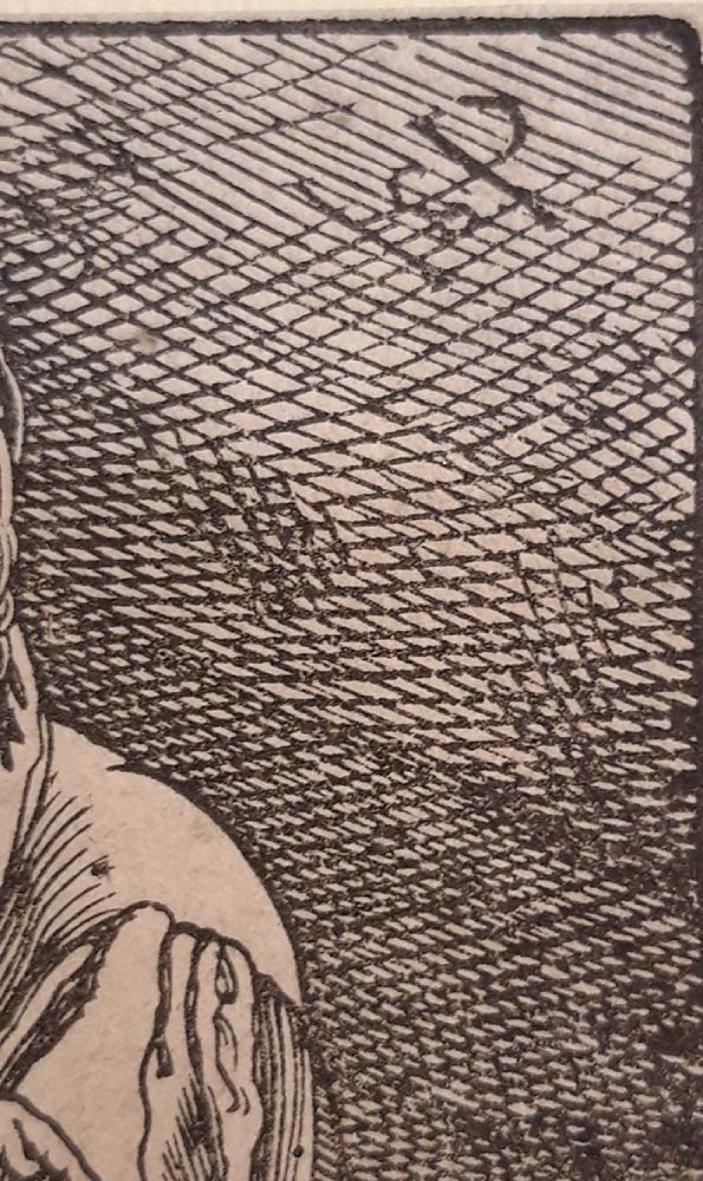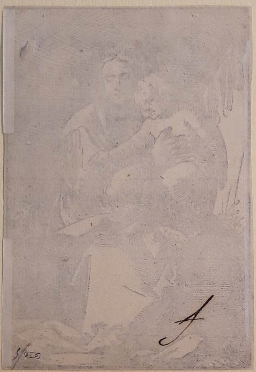 Ottima prova di questa rara incisione, completa di piccoli margini oltre la linea di composizione. Perfetta conservazione del foglio con al verso due sottili linguelle di carta, che servivano ad applicalo su supporto cartaceo, e timbro di Collezione: Ambroise Firmin-Didot (Parigi 1790-1876).