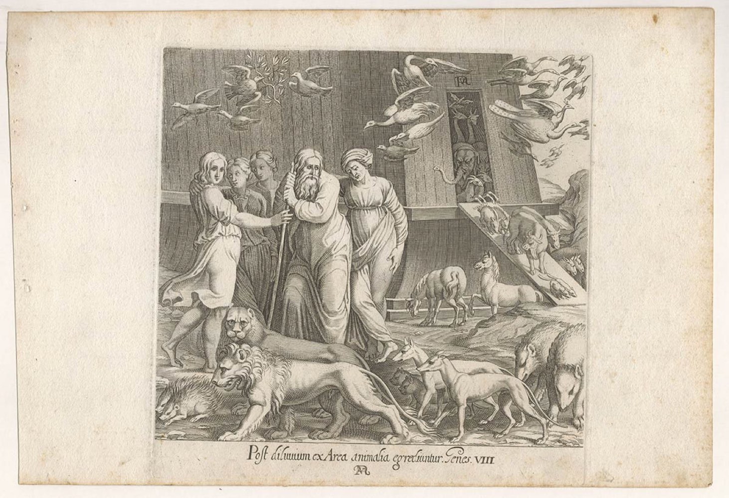 Francesco Villamena (1564-1624) da Raffaello Sanzio (1483-1520): POST DILUVIUM EX AREA ANIMALIA EGREDIUNTUR. GENES. VIII
