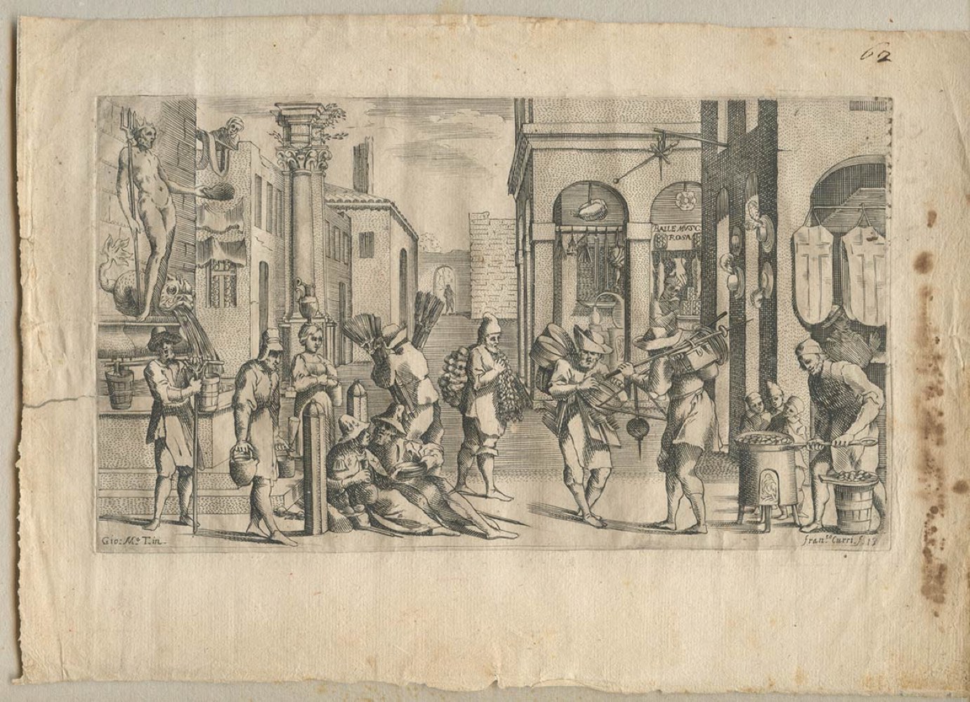 una tavola tratta da 'Le virtù et Arti essercitate in Bologna', serie in 20 fogli incisi da Curti su disegni di Giovanni Maria Tamburini, dedicata a Vespasiano Grimaldi