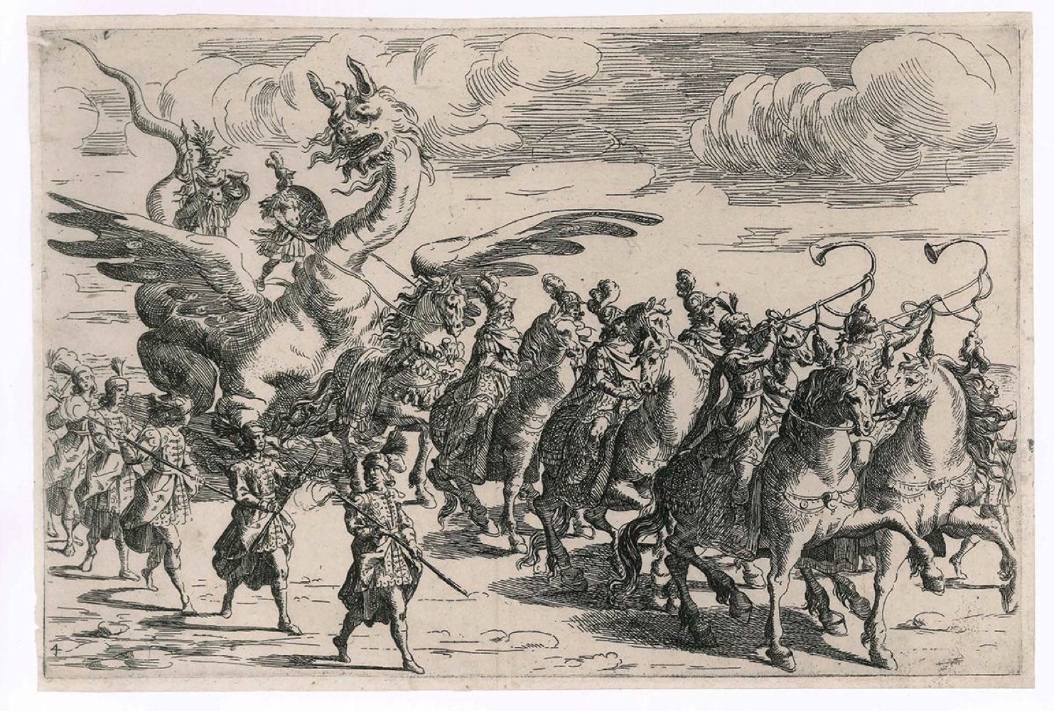 Jacques Callot (1592-1635): CORTEO CON DRAGO ALATO