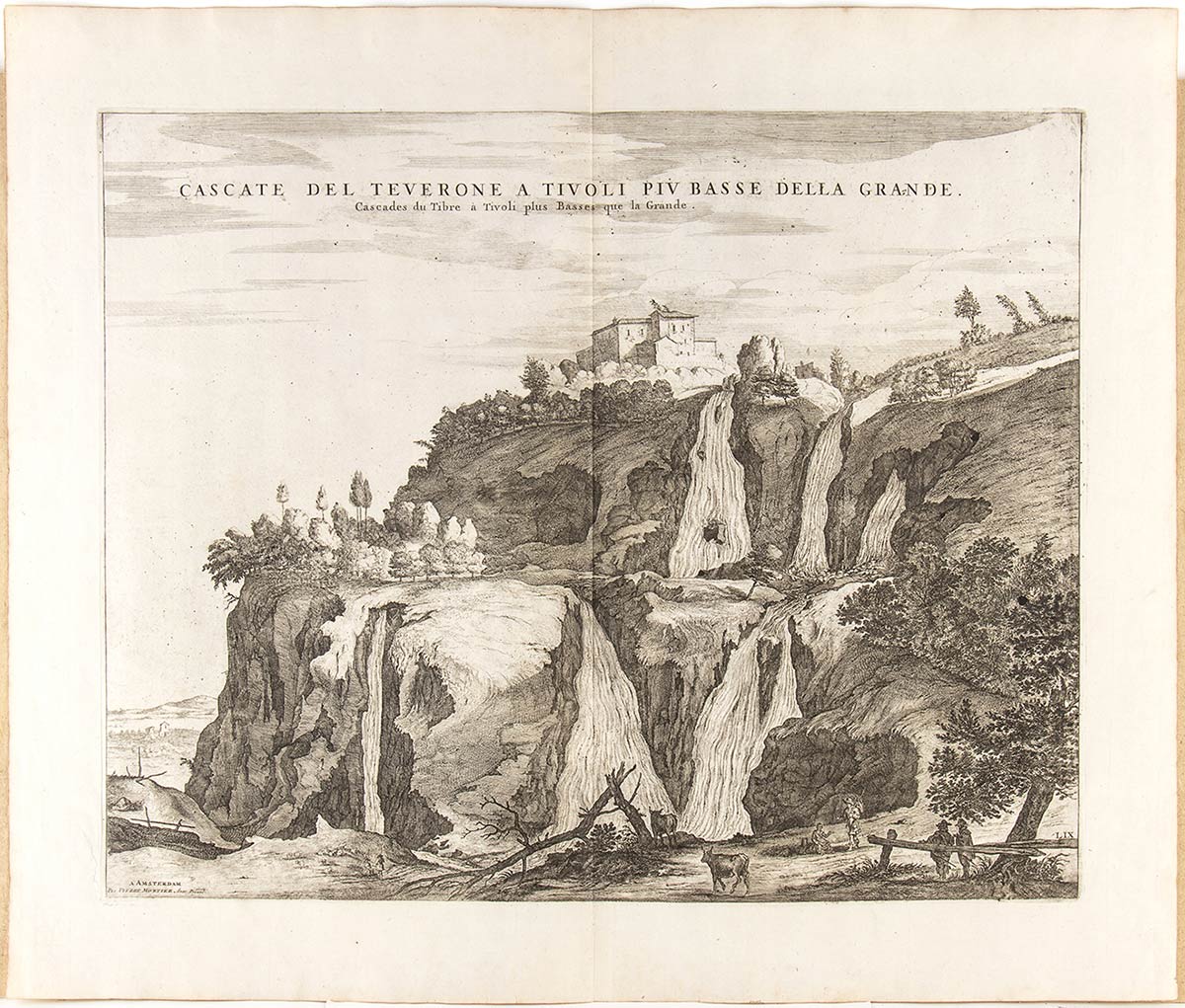Pierre Mortier (1661-1711): CASCATAE DEL TEVERONE A TIVOLI PIÙ BASSA DELLA GRANDE, 1704