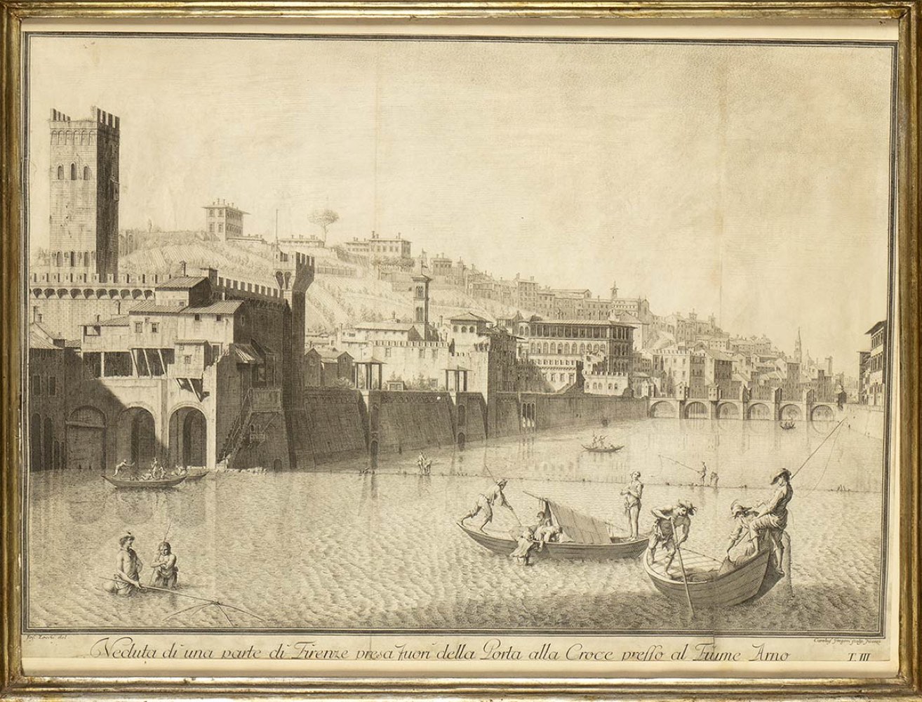 Carlo Gregori (1702-1759) da Giuseppe Zocchi (1717 (o 1711?)-1767): VEDUTA DI UNA PARTE DI FIRENZE PRESA DELLA PORTA ALLA CROCE PRESSO AL FIUME ARNO, 1744