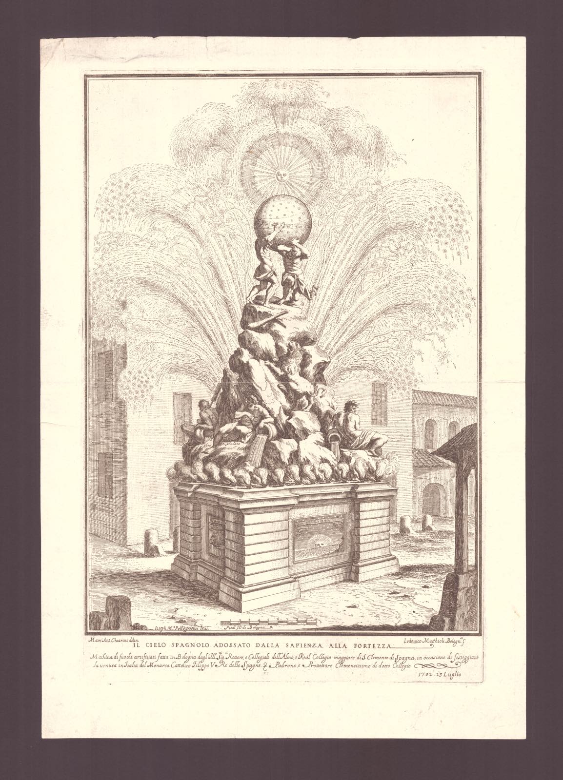 Macchina per fuochi d’artificio fatta in Bologna per festeggiare la visita dal re di Spagna Filippo V.