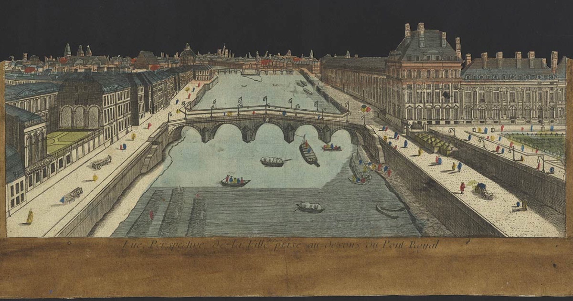 Veduta della città di Parigi con il gran ponte Royale dove sotto passa la Senna: 43,5x19,5 cm