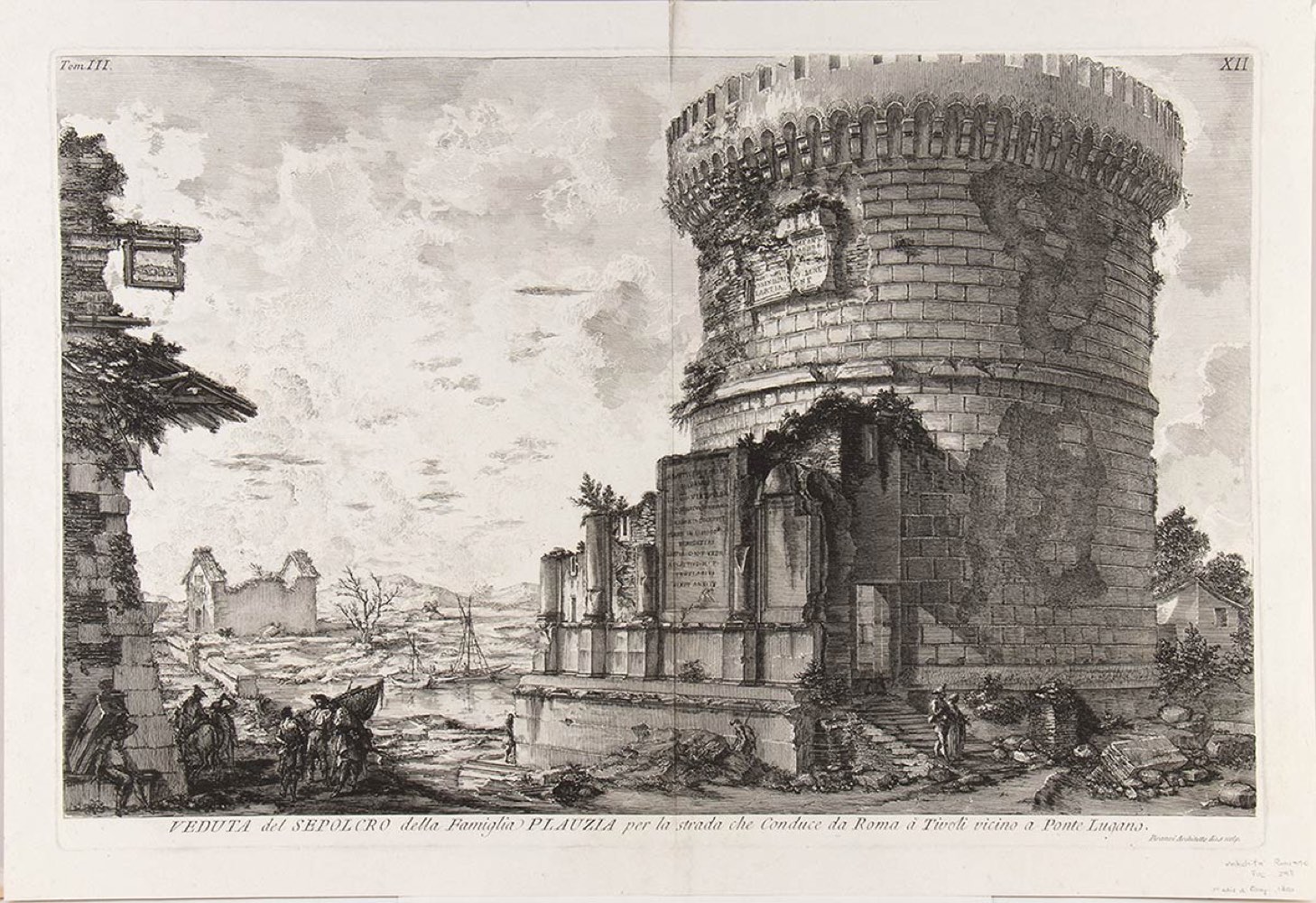 Giovanni Battista Piranesi (1720-1778): VEDUTA DEL SEPOLCRO DELLA FAMIGLIA PLAUZIA PER LA STRADA CHE CONDUCE DA ROMA À TIVOLI VICINO A PONTE LUGANO