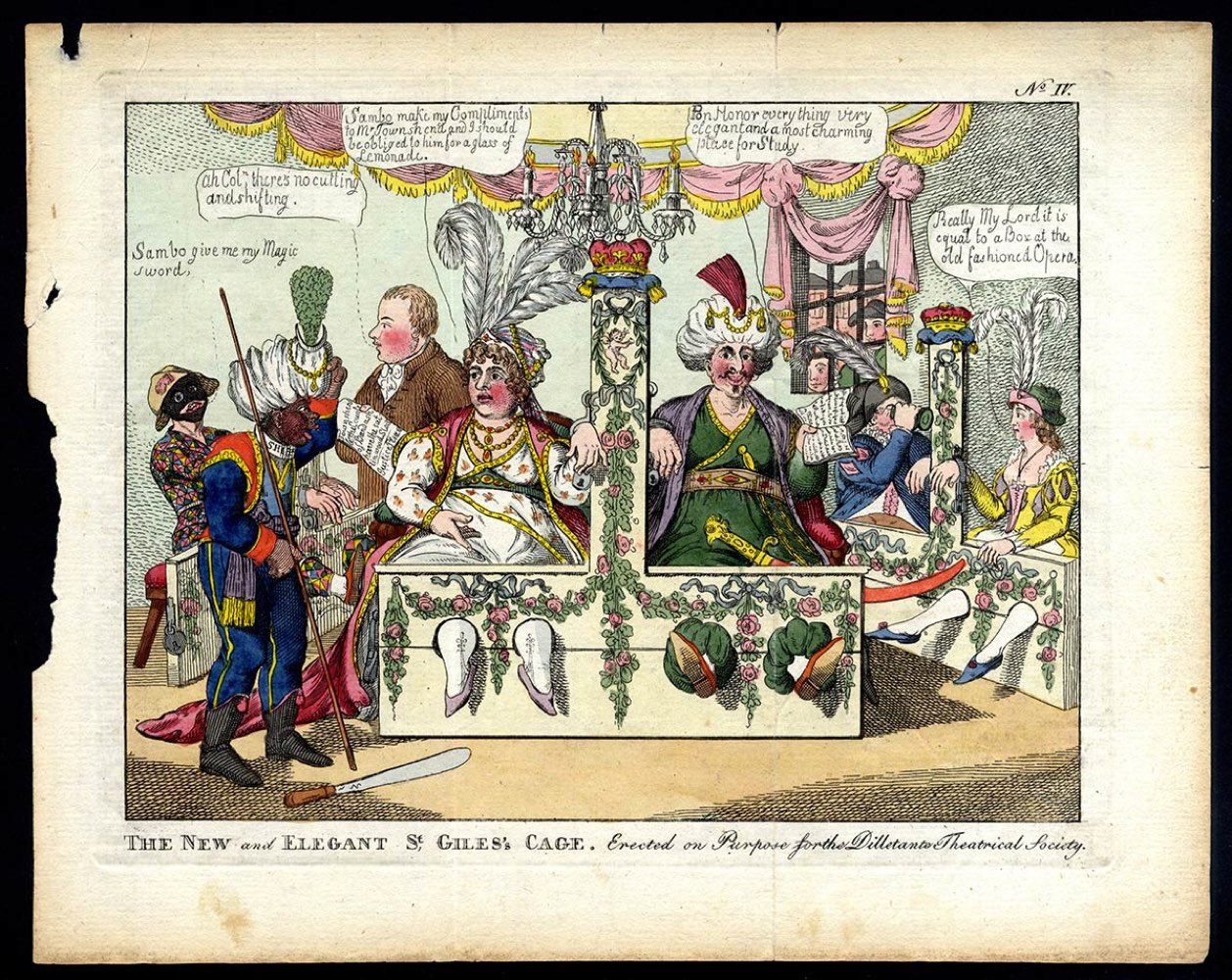 James Gillray (1756-1815): THE NEW AND ELEGANT ST GILES’S CAGE. ERECTED ON PURPOSE FOR THE DILLITANTI THEATRICAL SOCIETY.