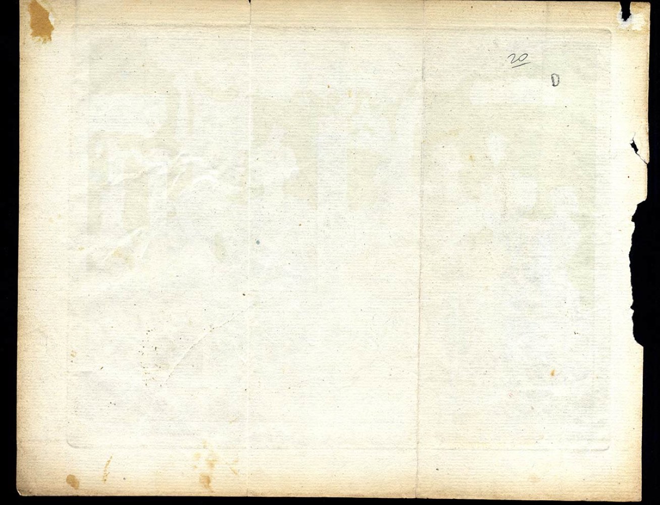 Esemplare in buono stato, con vivace coloritura d’epoca, mancanze al bordo sinistro del foglio e tracce di pieghe di pubblicazione, qualche breve strappo e qualche macchia.