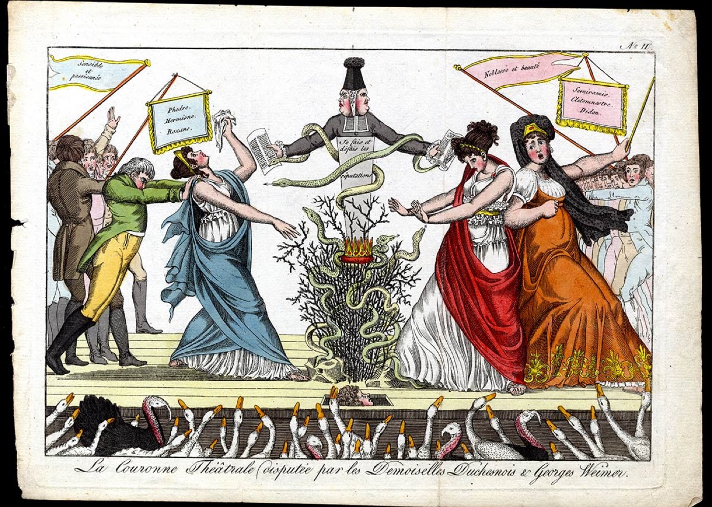 James Gillray (1756-1815): LA COURONNE THÉATRALE DISPUTÉE PAR LES DEMOISELLES DUCHESNOIS & GEORGES WEIMER