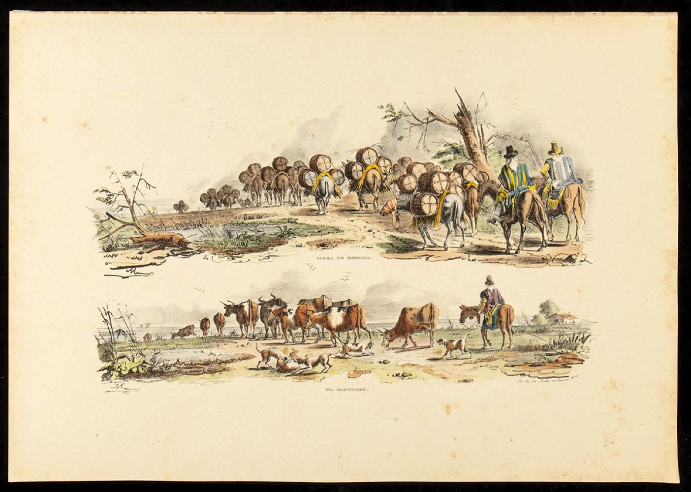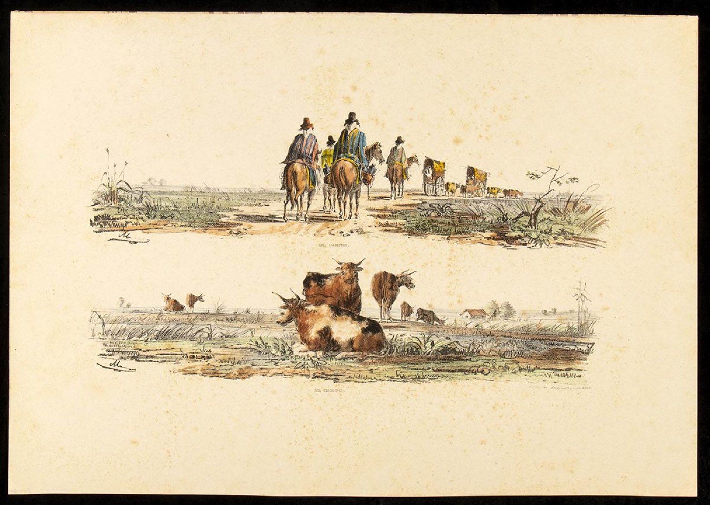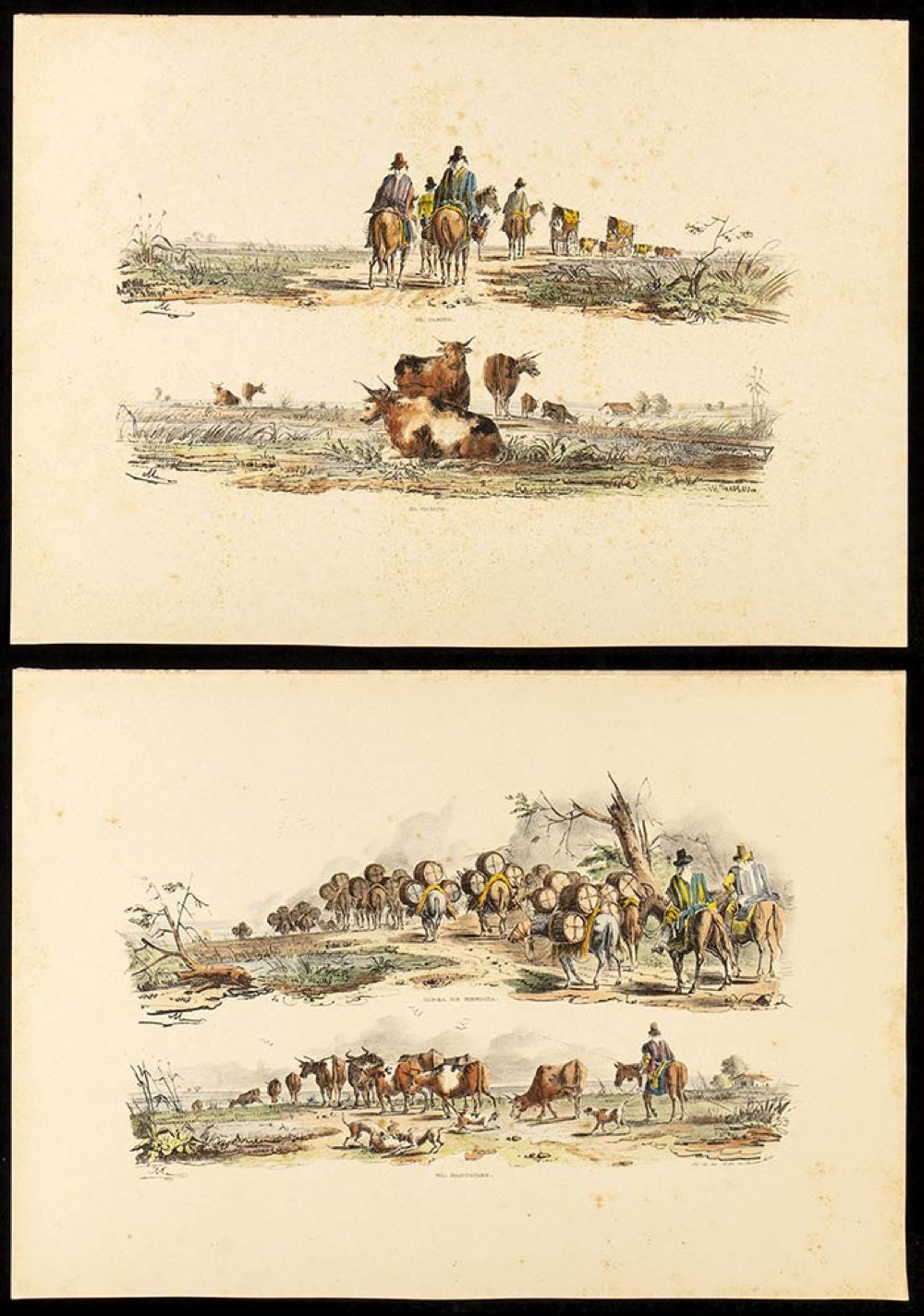Carlos Morel (1813-1894): CARGA DE MENDOZA / EL PASTOREO' E 'EL CAMINO / EL CAMPO'