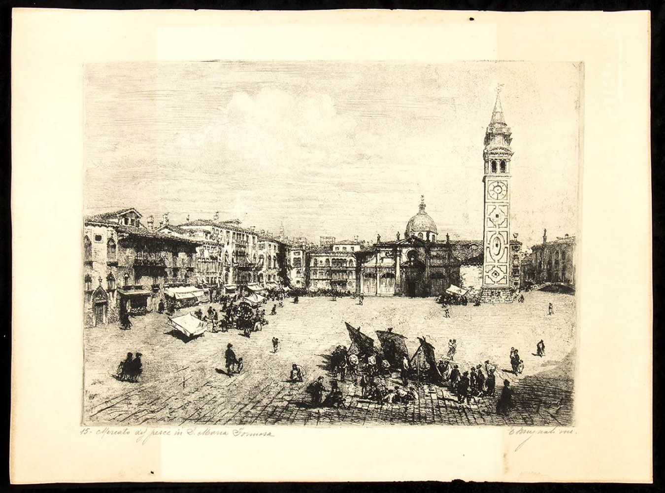 Emanuele Brugnoli (1859-1944) : MERCATO DEL PESCE IN S. MARIA FORMOSA A VENEZIA, C. 1912